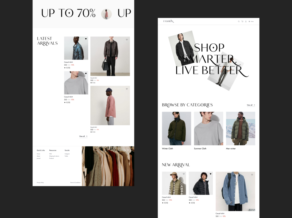 The fashion brand seamlessly combines style and forward-thinking design. We crafted the website to ensure an effortless and enjoyable shopping experience, offering users high-quality products with ease and satisfaction.